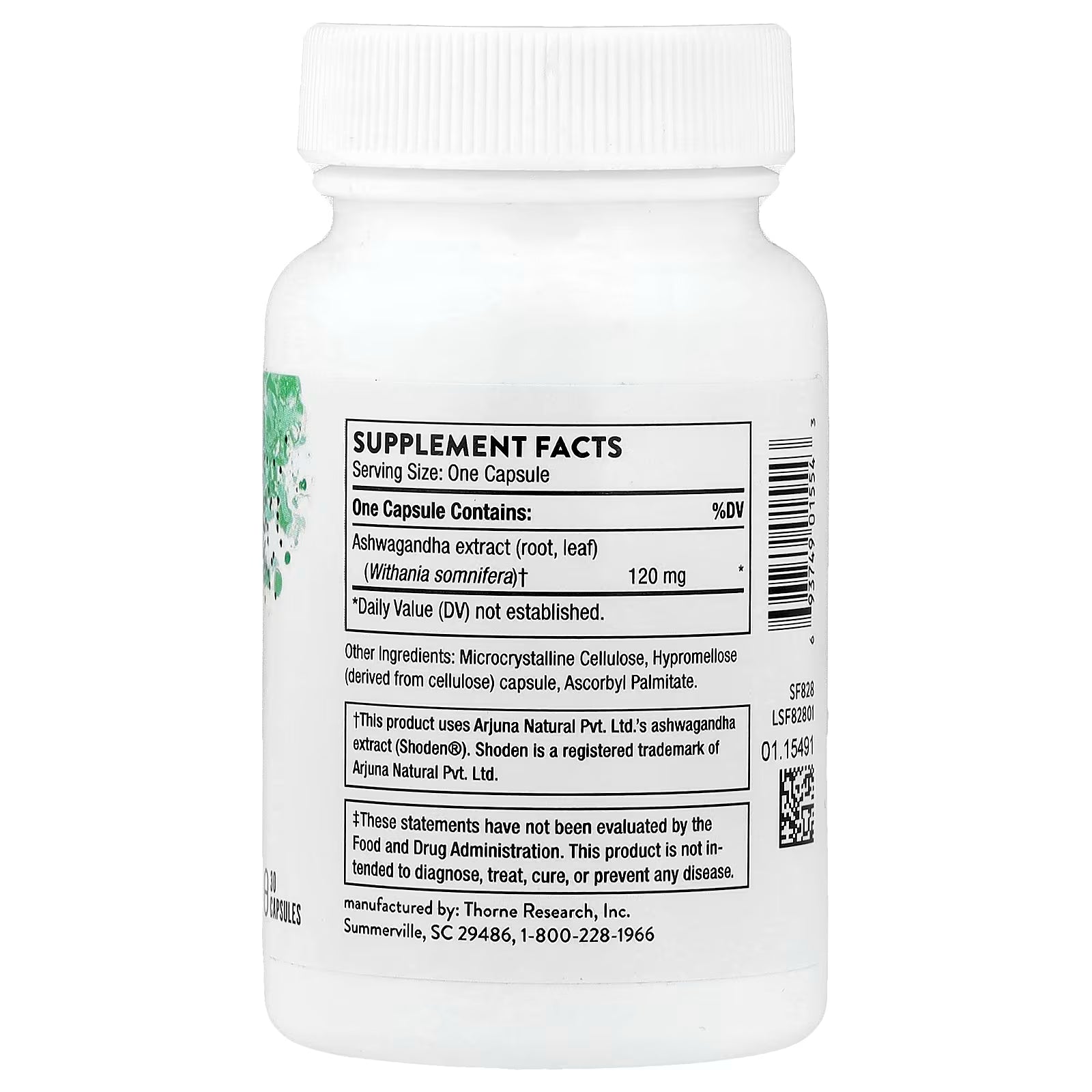 - Thorne Ashwagandha is a dietary supplement containing 120 mg ashwagandha extract (root, leaf) from Withania somnifera per capsule.