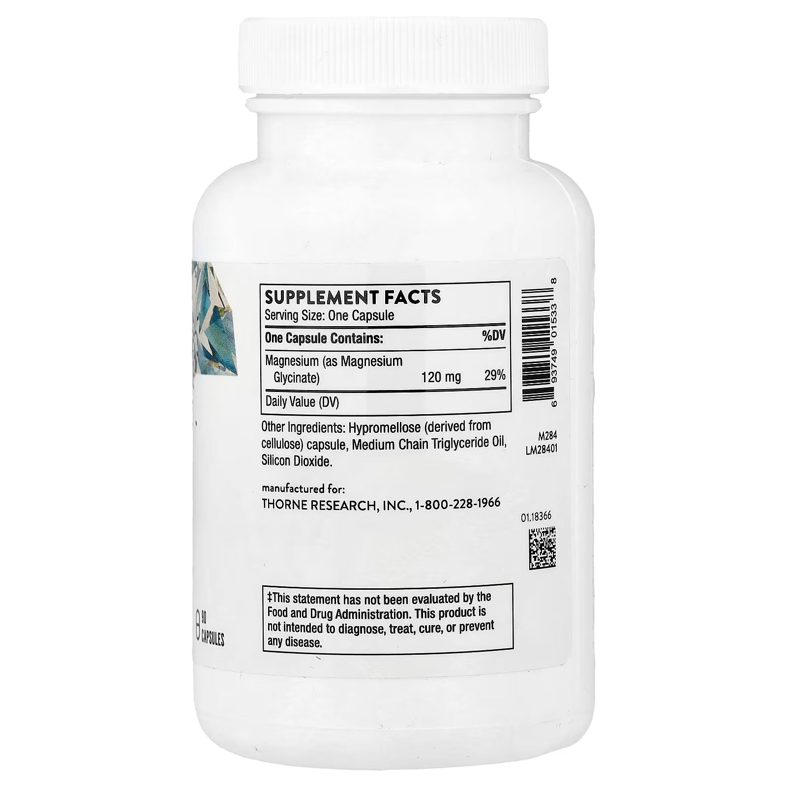 - Thorne Magnesium Glycinate is a dietary supplement containing magnesium in the glycinate form.
