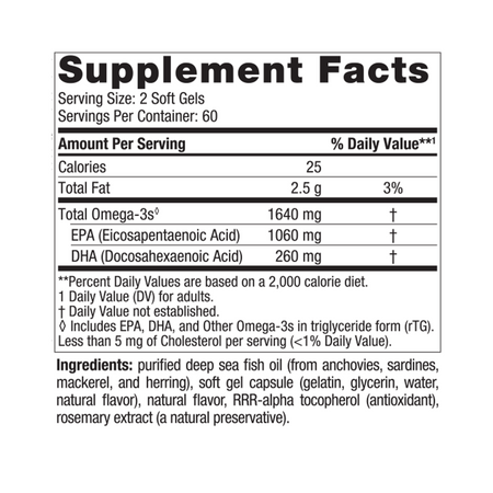 β Includes EPA, DHA, and Other Omega-3s in triglyceride form (rTG).