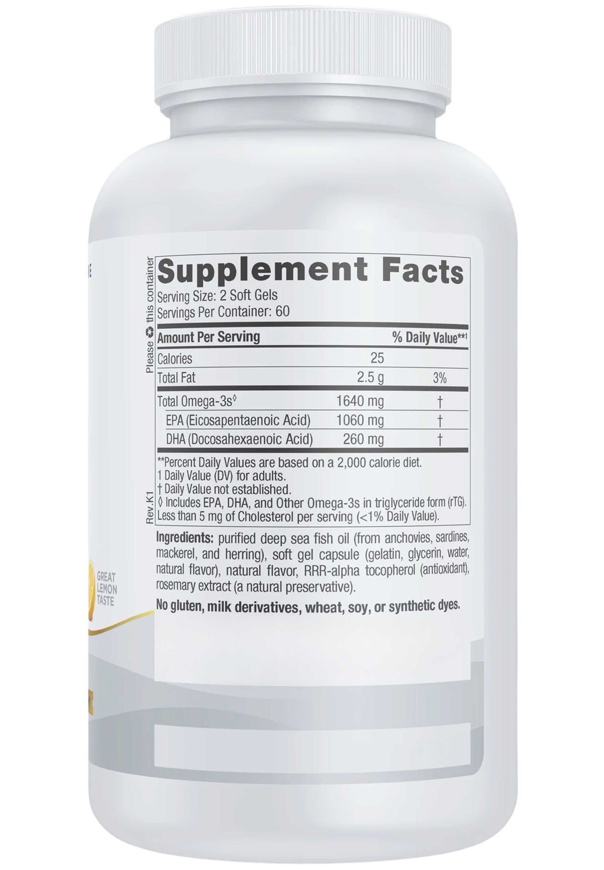 - Contains 1060 mg of EPA (Eicosapentaenoic Acid) and 260 mg of DHA (Docosahexaenoic Acid), formulated in triglyceride form (rTG).