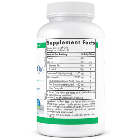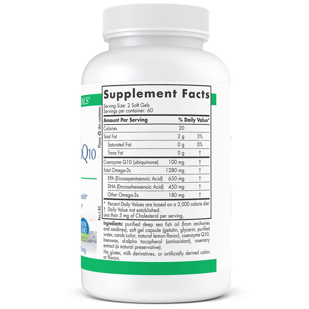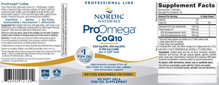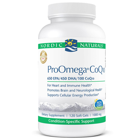 - Nordic Naturals ProOmega CoQ10 is a dietary supplement containing 1280 mg of total omega-3s and 100 mg of Coenzyme Q10 (as ubiquinone) per serving.