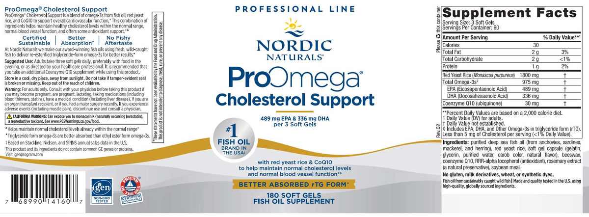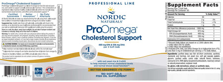 - Nordic Naturals ProOmega Cholesterol Support is a dietary supplement containing omega-3s from fish oil, red yeast rice, and coenzyme Q10.
