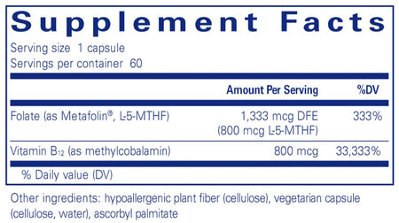 - Pure Encapsulations B12 Folate is a dietary supplement containing vitamin B12 and folate in highly bioavailable forms.