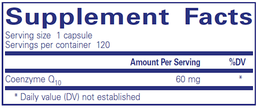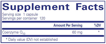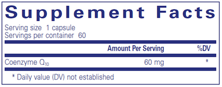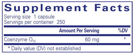 - Pure Encapsulations CoQ10 60 mg is a dietary supplement containing 60 mg of coenzyme Q10 per capsule.