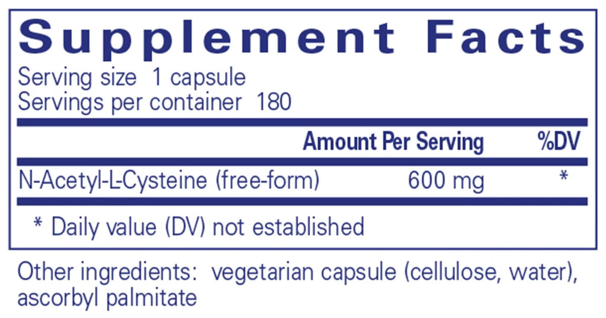 - Pure Encapsulations NAC (N-Acetyl-L-Cysteine) 600 mg is a dietary supplement containing 600 mg of N-Acetyl-L-Cysteine per capsule.
