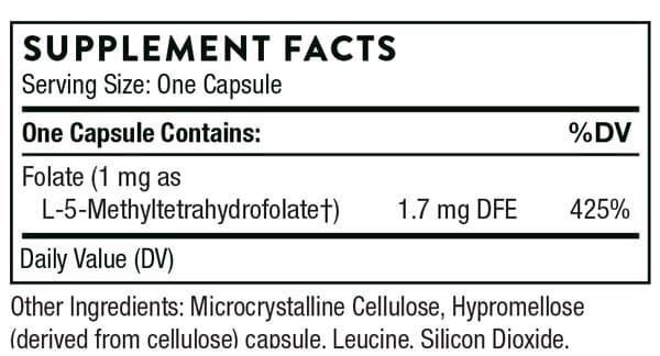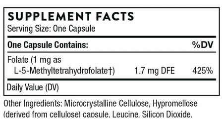 - Thorne 5-MTHF is a dietary supplement containing 1.7 mg DFE folate (1 mg as L-5-methyltetrahydrofolate) per capsule.