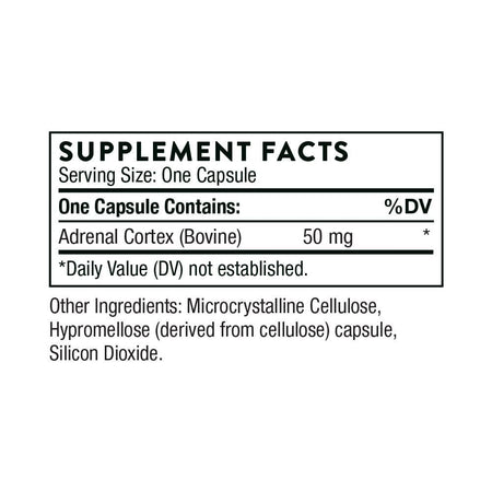 - Thorne Adrenal Cortex is a dietary supplement containing 50 mg adrenal cortex (bovine) per capsule.