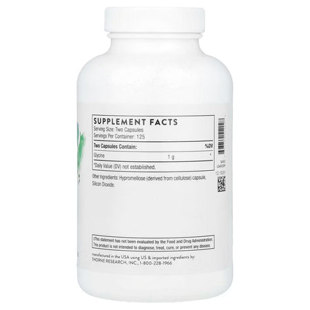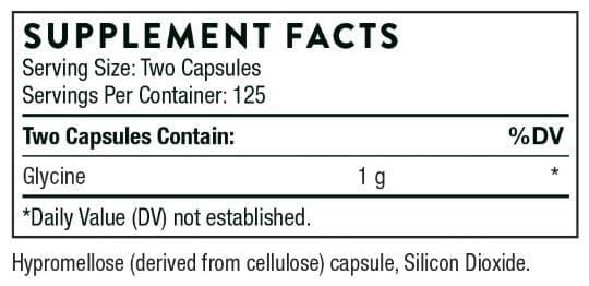 - Thorne Glycine is a dietary supplement containing 1 g glycine per two capsules.