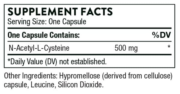 - Contains 500 mg N-Acetyl-L-Cysteine per capsule.