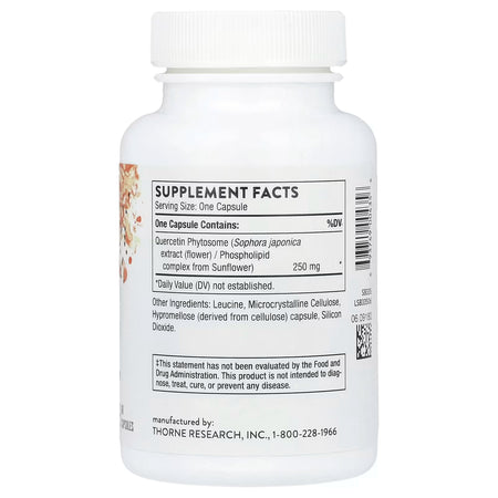 - Thorne Quercetin Phytosome is a dietary supplement containing 250 mg quercetin phytosome (Sophora japonica extract (flower) / phospholipid complex from sunflower) per capsule.