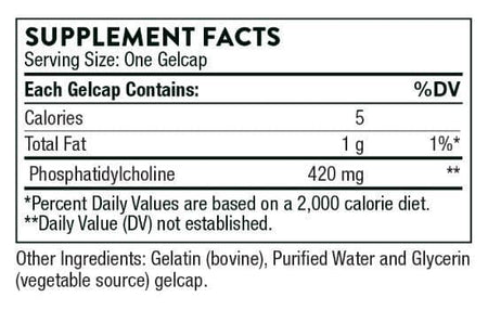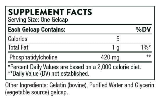 - Thorne Phosphatidyl Choline is a dietary supplement containing 420 mg phosphatidylcholine per gelcap.