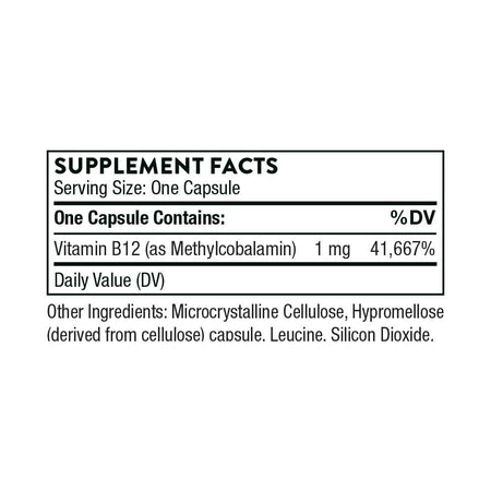 - Thorne Vitamin B12 as Methylcobalamin is a dietary supplement containing 1 mg (1,000 mcg) of vitamin B12 as methylcobalamin per capsule.
